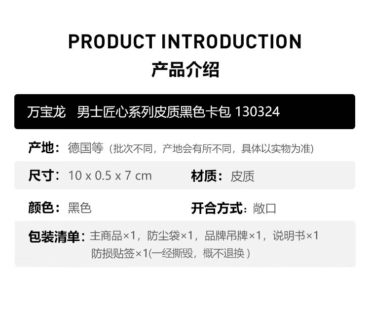 商品名称:万宝龙MONTBLANC男士匠心系列经典黑5cc卡片夹130324新年礼物