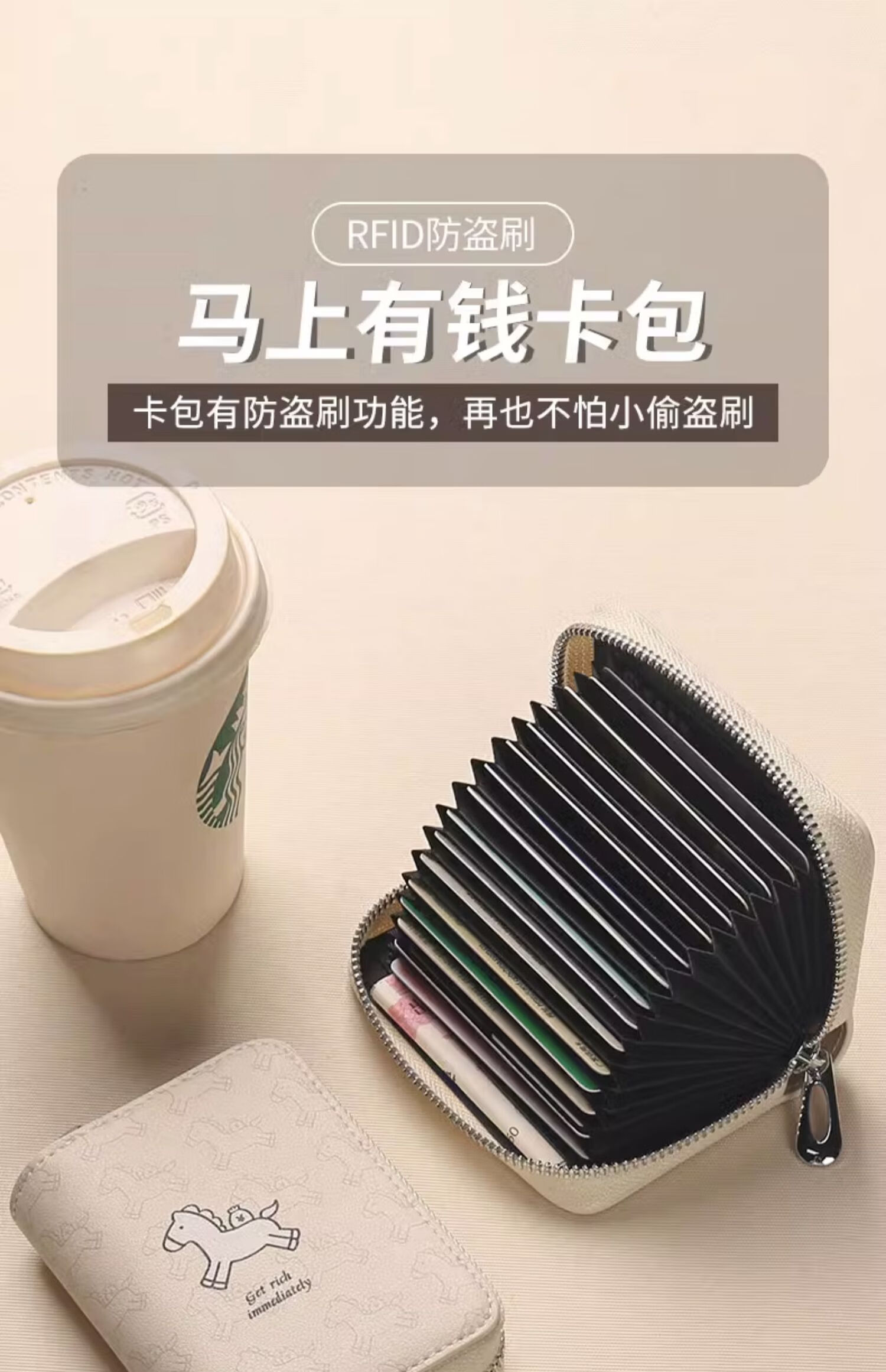商品名称:参拾忆2026七夕卡包女式小巧可爱卡位多信用卡防盗刷证件零钱名片夹收纳 马上有钱米卡包【18卡+2证件位】